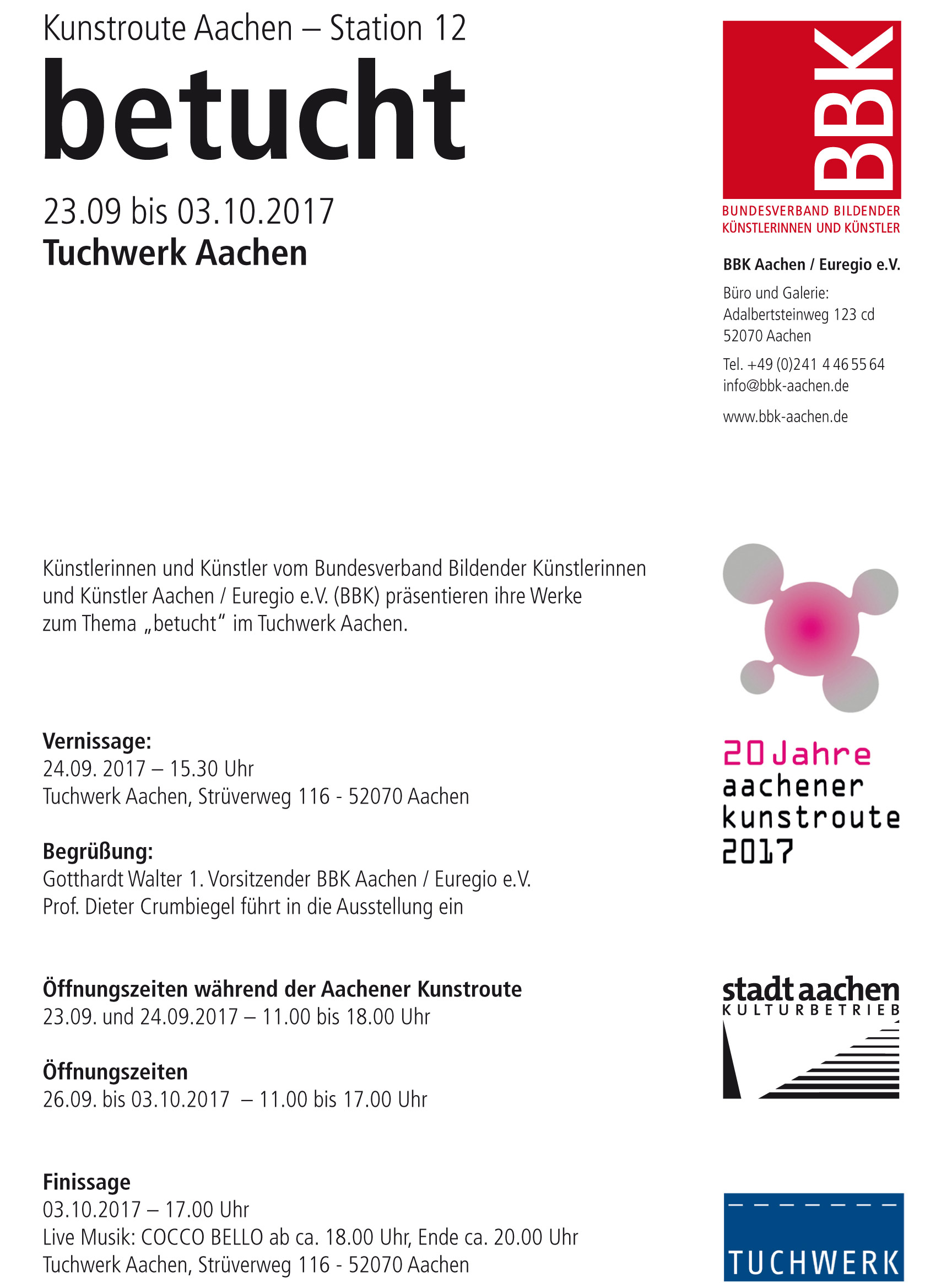 Öffnungszeiten während der Aachener Kunstroute: